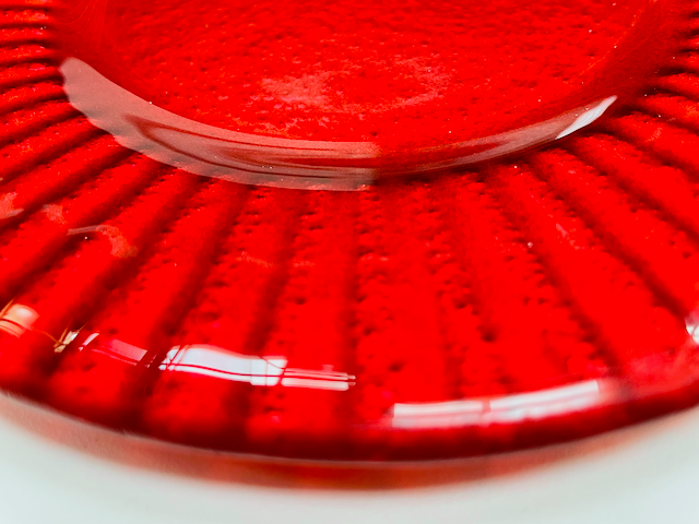 NUBIS design round plate d20 cm glass decorated with red metallic color