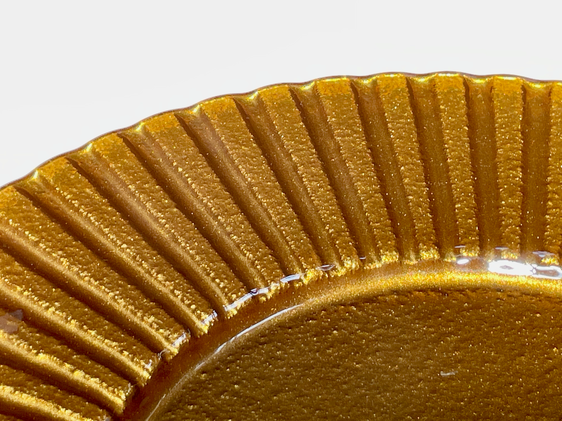 Crafted by skilled artisans, the NUBIS design round plate (30 cm) merges Art Nouveau elegance with functional artistry. This hand-made glass plate features exquisite golden decoration and a subtle glittering effect, making it ideal for sophisticated food presentation or as a decorative centerpiece. Its refined craftsmanship ensures both aesthetic appeal and durability, elevating your dining or display experience with a touch of timeless luxury.