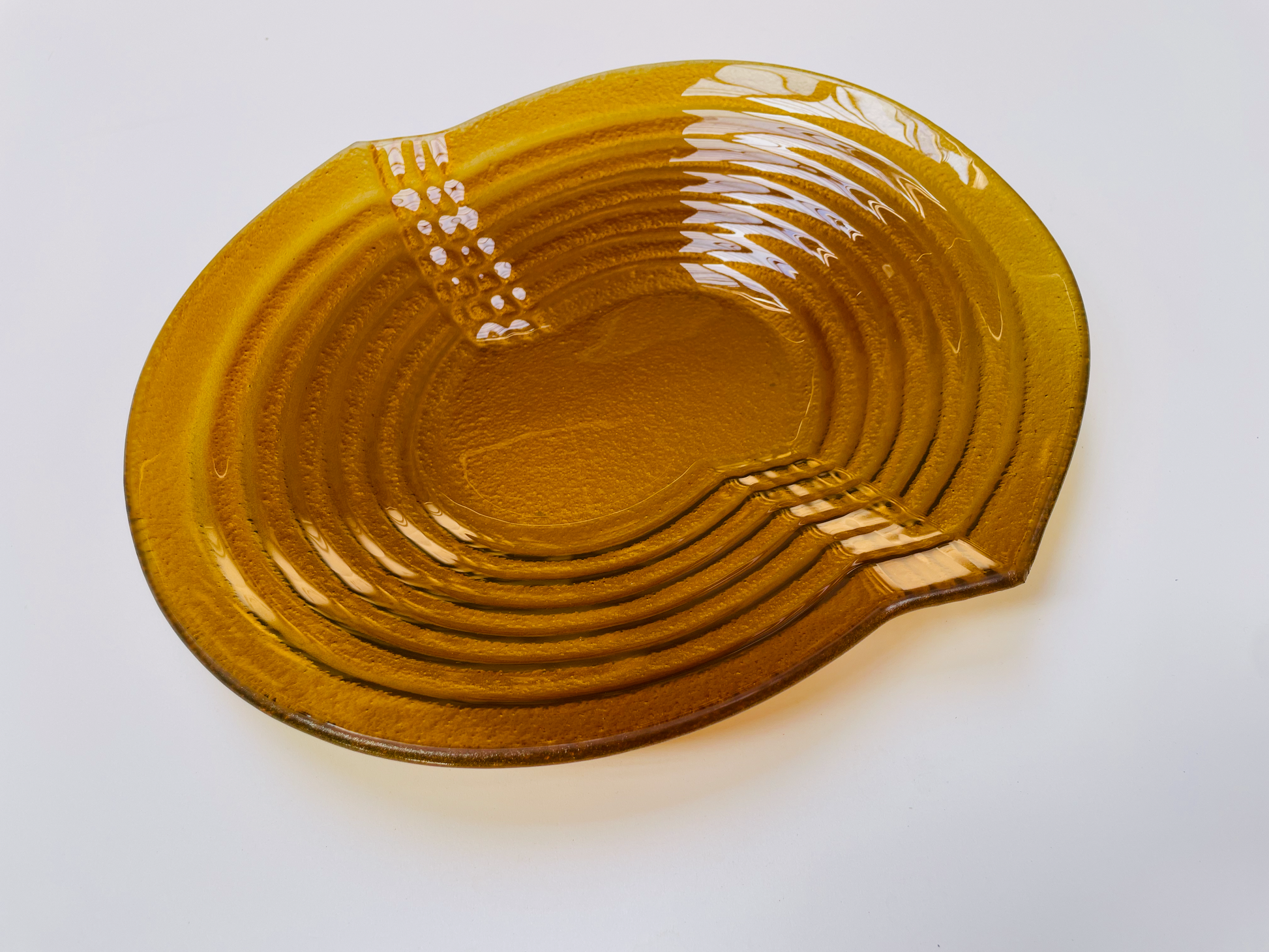 Crafted with expert precision, the STAP design glass fruit bowl measures 32 x 30 cm and features a unique honey gold color. Inspired by Art Nouveau aesthetics, this handmade piece combines elegant curves with rich, warm hues to highlight your fruit display with artistic flair. Its exquisite craftsmanship ensures both beauty and durability, making it a refined centerpiece for any table.