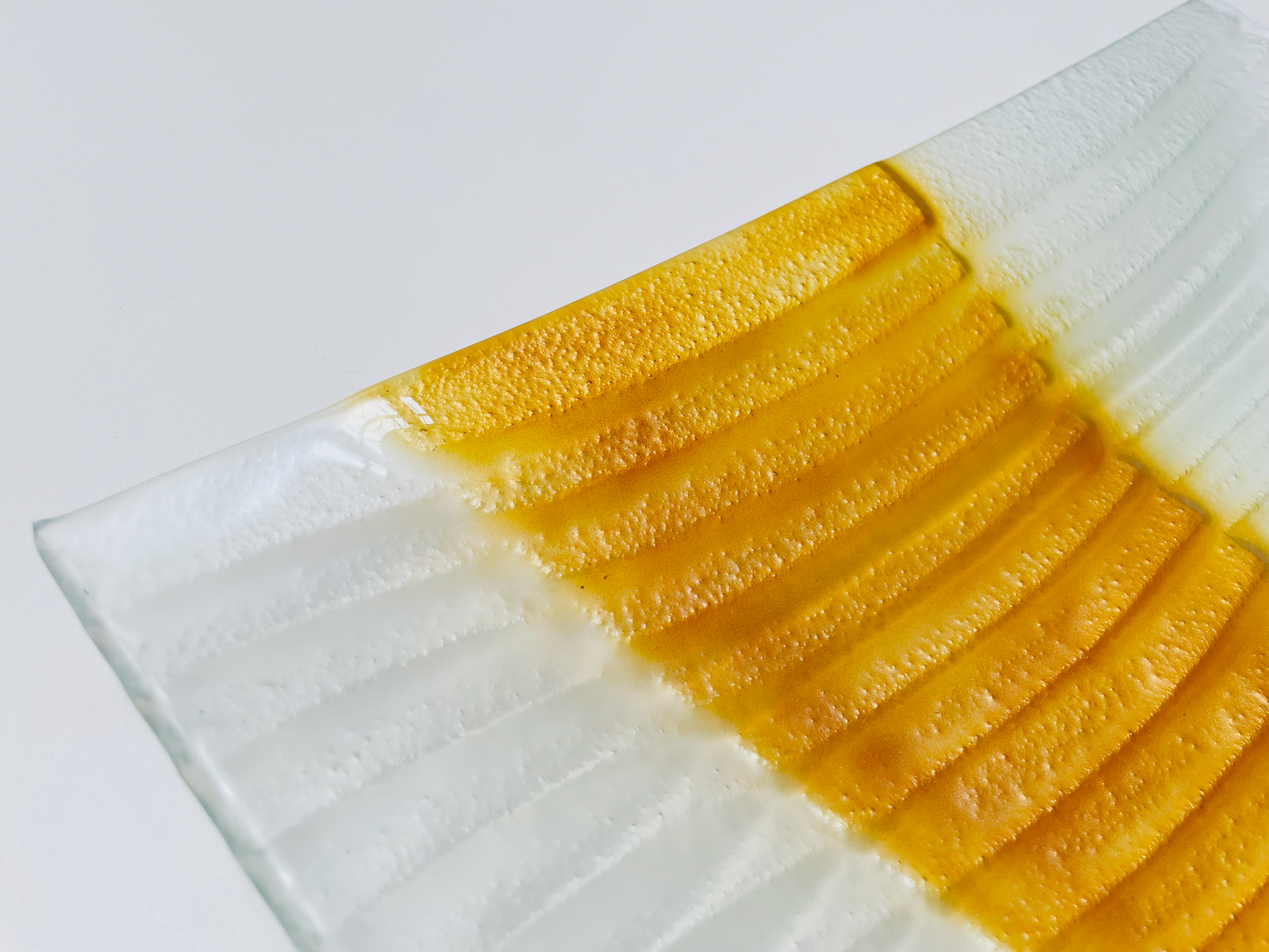 STAP design glass plate 33 x 33 cm pearl white with honey gold color decoration