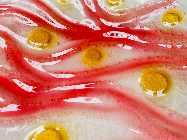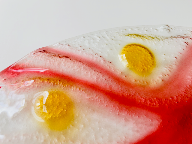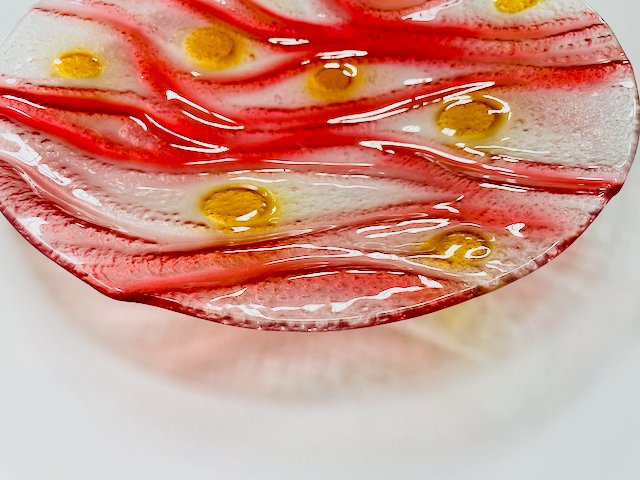 VODA round glass fruit bowl d35 cm decorated with gold and red colors